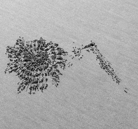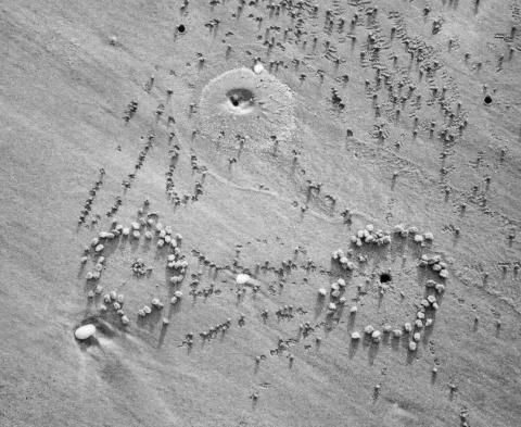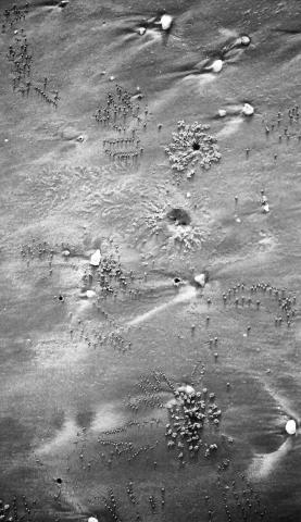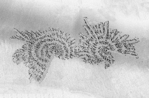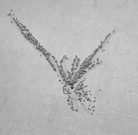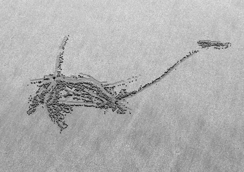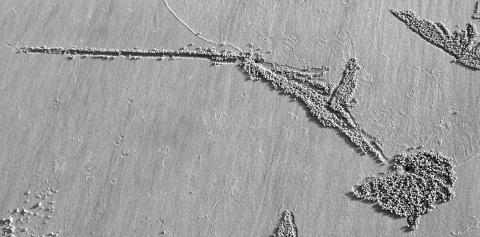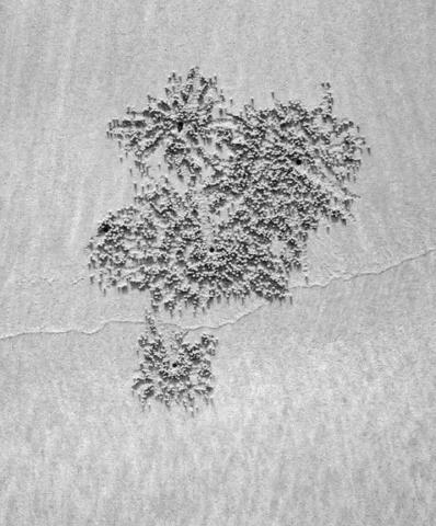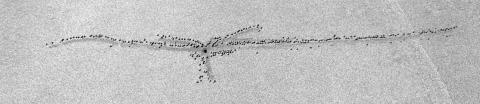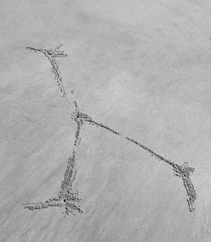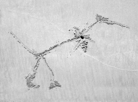 Viewed on another scale, footprints and bicycle treads become an artform themselves.