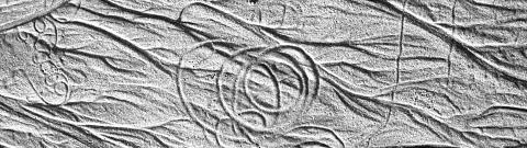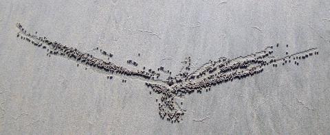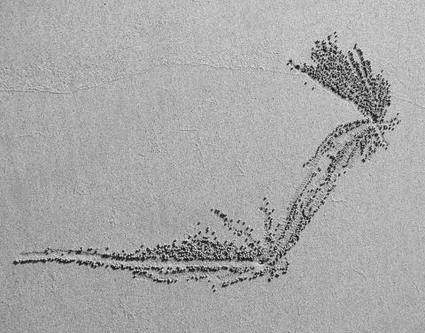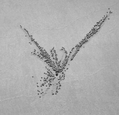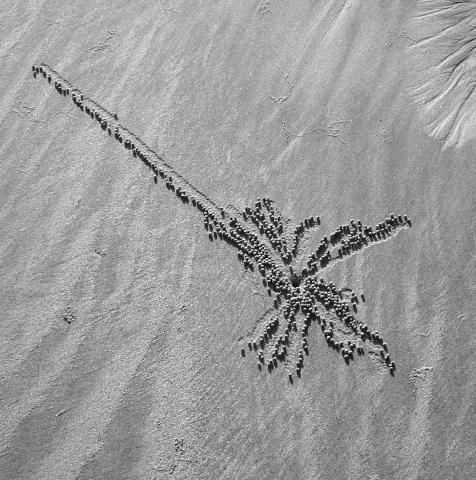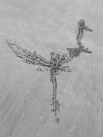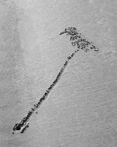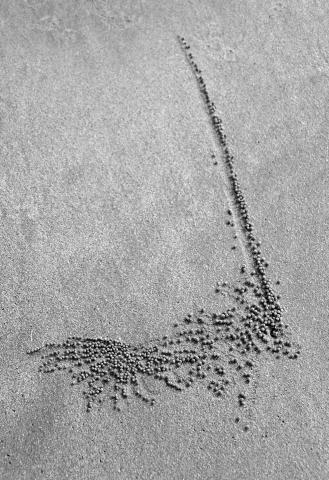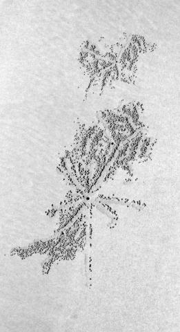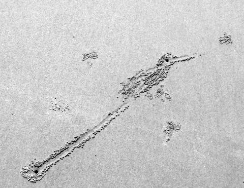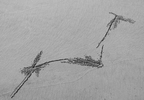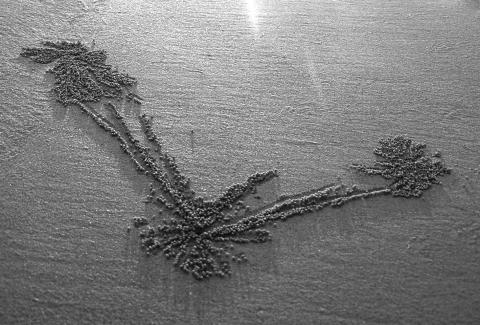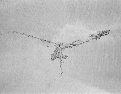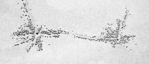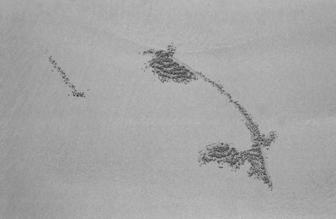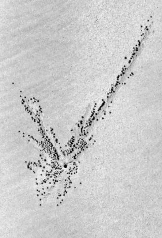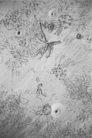 Viewed on another scale, footprints and bicycle treads become an artform themselves.